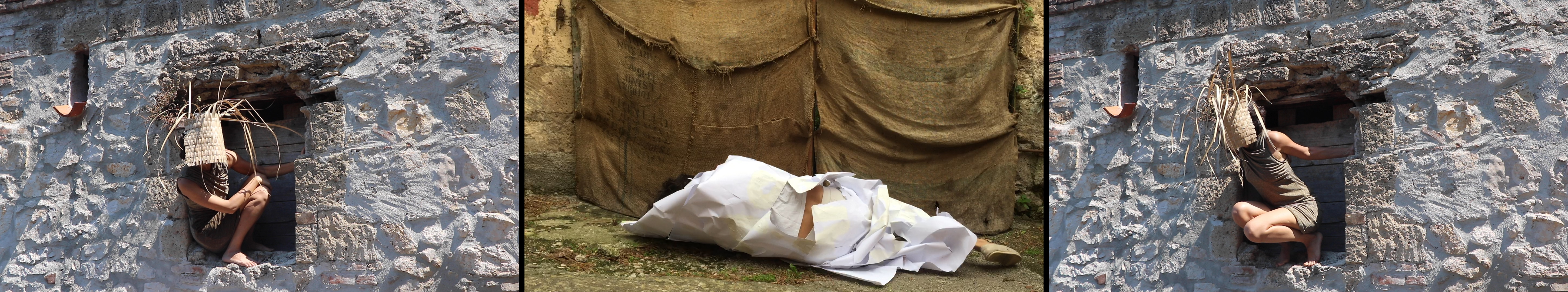 In this three-channel video installation, the artist Himali Singh Soin appears as a masked figure whose purpose is to reconnect bla to the world. The loss of bla is reflected in the crisis of contemporary times, represented as parched earth and a weary body.