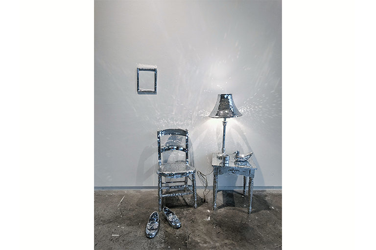 Eme Watson, "House Party" installation, 2021. Found objects, 35,000 mirror tiles. Eme Watson