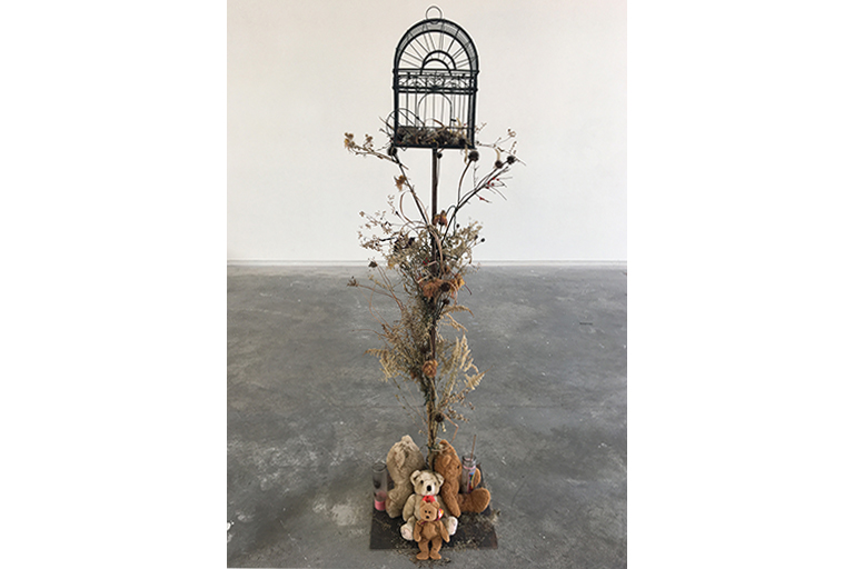 Machaila Gray, Untitled roadside memorial, 2021. Found and foraged objects, metal fabrication. Machaila Gray