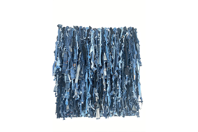 Maya Foster, "HombresSonHombres," 2021. Blue jean denim strips. Maya Foster