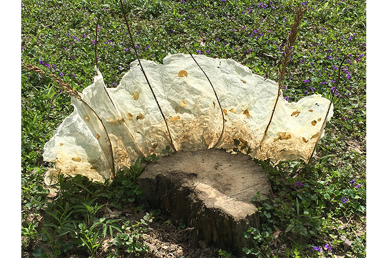 To be alive is to be in relationship. To be human is to seek connection. Through our senses we connect to one another, to the world around us and to the spirit of life itself. Our human experience is an opportunity for sacred relationship. I have found this relationship through the experience and transformation of plant life. A plants life cycle exemplifies the life~death~rebirth process that is our human experience. With intention, I harvest and transform plant fibers, molding them into handmade paper forms. Papermaking is a true alchemical transformation of natural materials utilizing earth, air, fire, and water. Being enveloped in nature provides me an opportunity for powerful reflection, grounding, and inspiration. Communicating and collaborating with the earth I am reminded to breathe more slowly and deeply. I watch the leaves moving with the wind. I see the birds flocking, moving together in unison. I come upon a plethora of examples of the harmony and tension we navigate in our human lives. Koininia bears witness to the natural world as a gateway to sacred relationship.