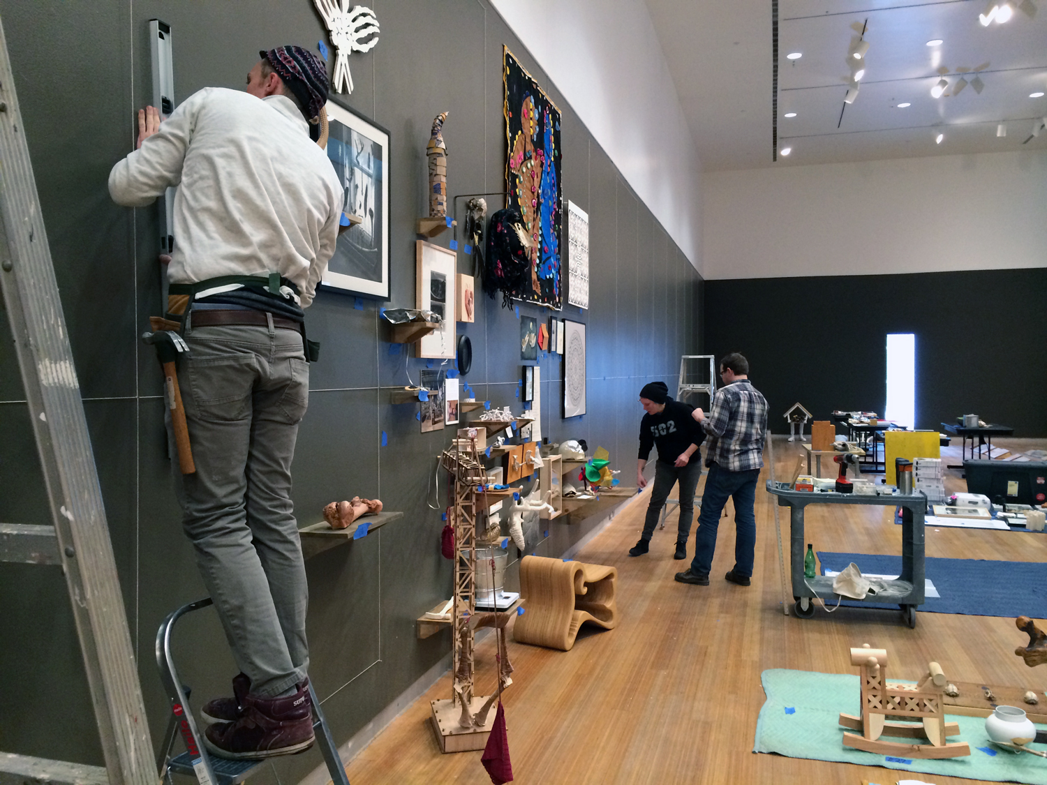 A very important life lessons I learned in the galleries is to never panic even when facing the direst of moments because it's just artwork and no one is going to die… I think? Once, the main gallery flooded during install. None of the artwork was damaged, but the humidity and drying machines delayed the installation until the day of the artist's talk. Three hours before the show was to open to the public, the director, her assistant, and I stood in the gallery with about 50 printed artist labels. The last magnets were placed just as the artist's talk had reached the Q&A session. The show opened on time and no one knew how frantically fast the show was installed.